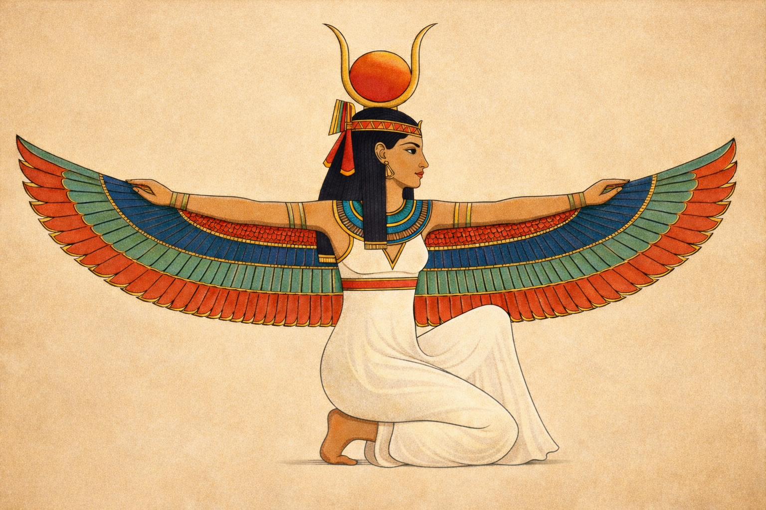 AUSET is a central deity in Kemetic cosmology, renowned for her strategic role in the resurrection of Ausar (Osiris). After his murder and dismemberment, she located and reassembled his body, enacted rites of restoration, and conceived Heru (Horus), securing dynastic continuity. Her actions laid the political and spiritual groundwork for Heru’s eventual reclamation of the throne.